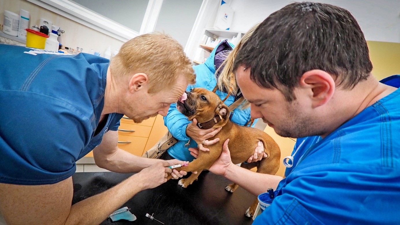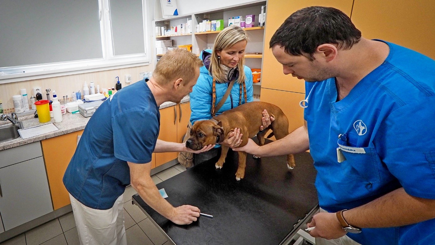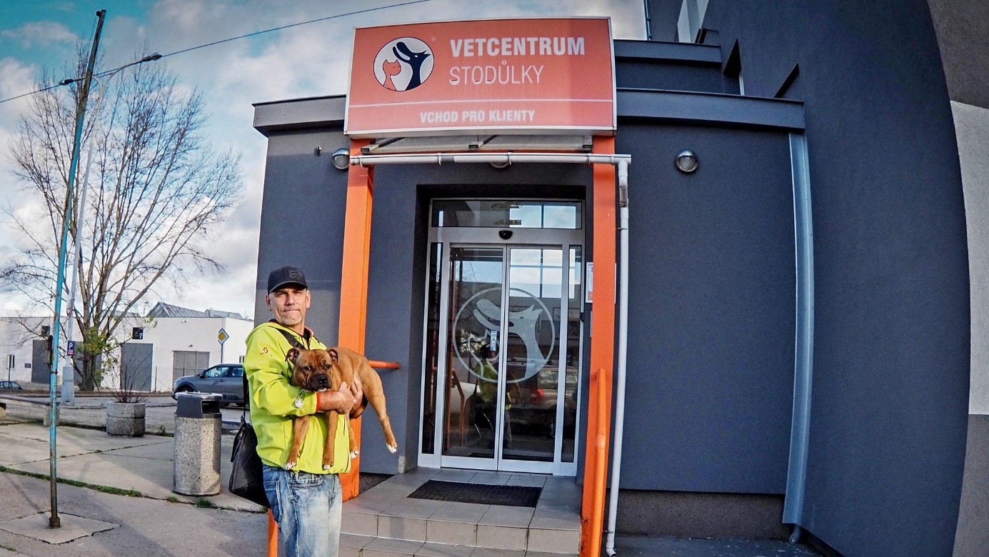 Pani Novotná nám to dohodla vo Vetcentre v Stodůlkach o druhej poobede. Moji páni radšej naplánovali cestu s rezervou, a tak sme boli na mieste činu včas. Pánko ma odniesol z auta do budovy zvieracej nemocnice.