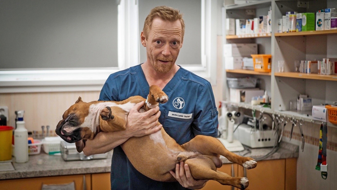 Pán doktor ma odovzdal do náručia paničky. Tam som zo všetkých možných náručí najradšej. Rozlúčil sa s nami a zmizol. Predstavte si, že tento pán doktor prišiel v sobotu do nemocnice len preto, aby mi mohol operovať nožičku!!! To je frajer. Stále mal úsmev na perách a dobrú náladu. Aha, aby som nezabudol: tento skvelý doktor sa volá Lukáš Duchek. Vďaka, pán doktor.