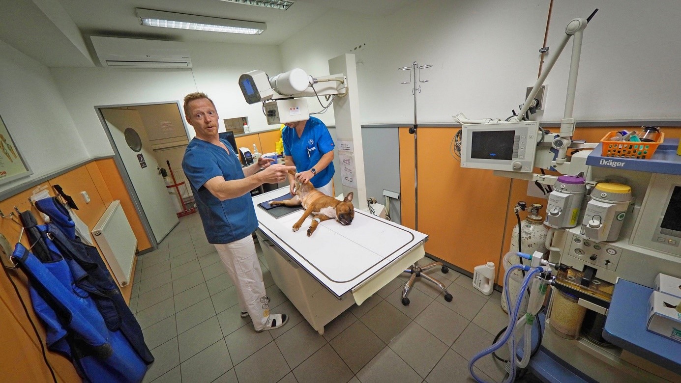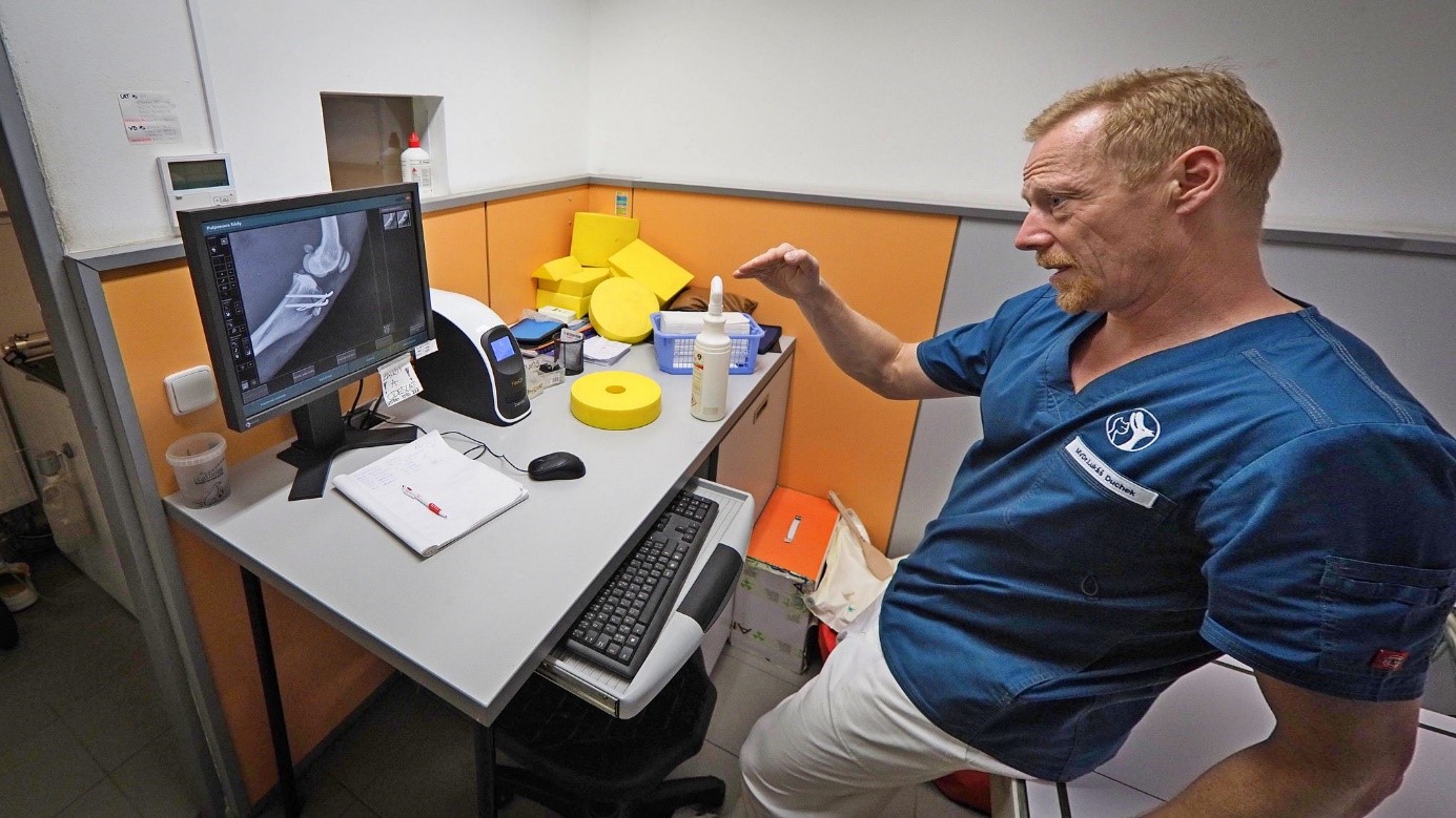 Zrazu sa mi moja veľká gebuľa zatočila a už som bol mimo. Oči som mal stále otvorené a pozoroval okolie. Nespal som, ale nemohol som ničím pohnúť. Našťastie ma pán doktor vzal do náručia ako bábätko a odpochodoval so mnou do ďalšej miestnosti, aby spravil röntgen mojej zranenej nožičky.